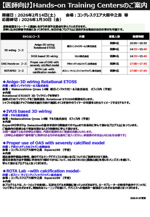 参加登録 Case Presentation 演題募集・Hands-on Training Center Medical Staff Hands-on お申込みはこちらより 参加登録 Case Presentation 演題募集 Hands-on Training Center Medical Staff Hands-on |